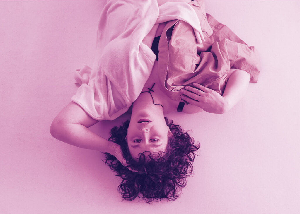 Many of the photos were taken from above, with Lauren lying on her back. This perspective portrays vulnerability which was appropriate for the intimate subject of the show. Show posters usually have a lot of text, and to be legible, text must have a high contrast against the background. Often, posters will have bars of colour at the top or bottom that for all of the relevant information. Many great posters use this effective technique, but I am also a big fan of designs that use an image with a background that covers the entire poster, and I was excited to create such a design with this project. Photos with plenty of blank space around the subject makes for an image that is very flexible for graphic design and works well for placing text on top.